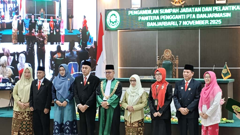 Bertempat di Aula Syech Muhammad Arsyad Al-Banjari Pengadilan Tinggi Agama Banjarmasin, Ketua Pengadilan Agama Tanjung bapak Fahmi Hamzah Rifai, S.H.I., beserta jajaran menghadiri Pengambilan Sumpah Jabatan dan Pelantikan Panitera Pengganti Pengadilan Tinggi Agama Banjarmasin.